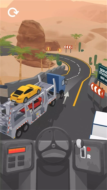 2、这款游戏的操作方式其实十分简单,只需点击屏幕上的方向盘按钮,就能操控车辆向前行驶。