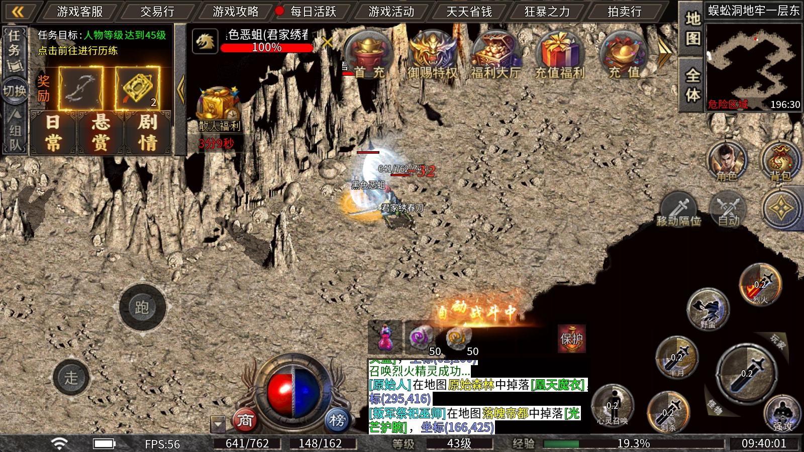 1、上线自带:雷电术,抗拒火环,魔法盾,地狱雷光,火墙,诱惑之光。