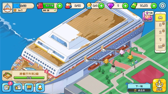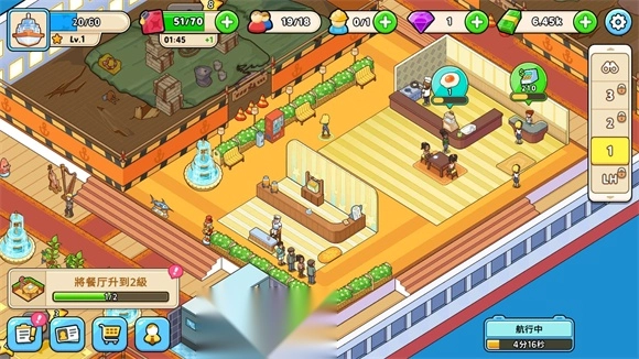 6、持续赢得更多金币,用于修复游轮的其他区域,以此吸引更多顾客,打造出最棒的豪华游轮。