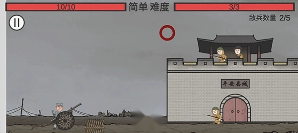 3、游戏开始后,我们需要向城墙上的敌人以及前来进犯的敌人开炮,消灭所有倭寇就能通关。