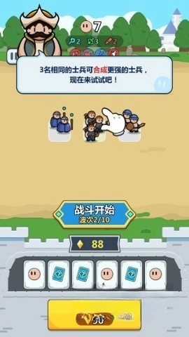 1、每次合成士兵都意味着力量的进阶,强大的职业军团正由你亲手打造。提升士兵的战斗力是通关的关键,熟练运用合并机制,将成为你崛起之路上的坚实基础。