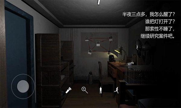 四重梦境的递进式探索:这款游戏以梦境作为核心设定,包含了四重不同的梦境场景。第一重梦境是初始房间,玩家需要收集哑铃、钢笔等12种物品,从中关联出“做梦”的线索,之后通过特定的剧情操作进入第二重梦境;第二重梦境需要利用显影灯、关灯等操作,来发现照片上的符号、悬浮的画作等线索;第三重梦境有“福字门”等具有标志性的元素,点击孢子蘑能够触发“王七时刻”,并收集王思凤的闹钟、一封信等关键道具;第四重梦境则需要通过走密道寻找无形路,解锁鬼头刀、斯克罗素等线索,从而推进到最终的真相。