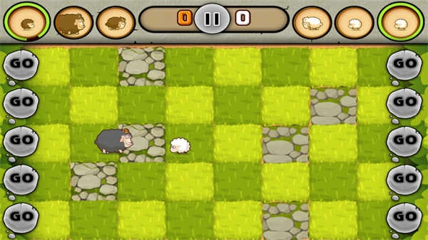 战略模式还原真实对抗逻辑,左右阵营分列两端,顶部滚动展示待出战绵羊。点击任一通道的“GO”按钮,就能立即派遣对应体型的单位入场。大羊可以碾压中羊,中羊能够克制小羊,小羊则能绕后干扰敌人,这类似于动态的剪刀石头布机制。成功突入敌方腹地即可获得积分,最终根据累计得分来判定输赢。