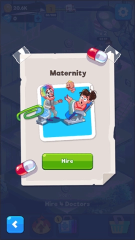 随着金币积累,持续招募新医生,组建多科室协作团队——外科、内科、牙科轮番上岗,效率翻倍不加班。