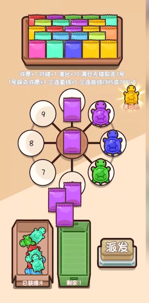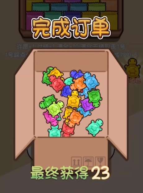 3、直到没有相同颜色的乌龟能进行对对碰,或者许愿款已全部获得,此时把剩下的包数拆完,得到的就是你最终获得的所有乌龟了。