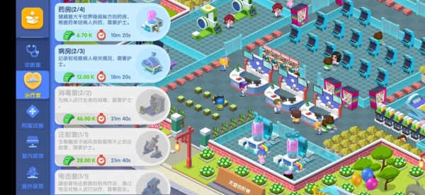 3、建造属于自己的医院!超大地图场景,自由扩建、摆设科室、装饰装潢。