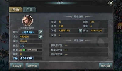 主角所有信息:封地、攻城以及产量信息等;