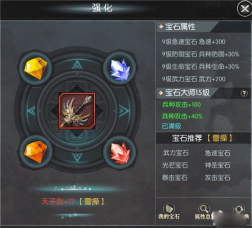 宝石能够增强武力、智力、敏捷、急速、兵种攻击、防御、生命、暴击、命中、闪避、格挡、元素攻击、元素防御、武将技能效果等属性。